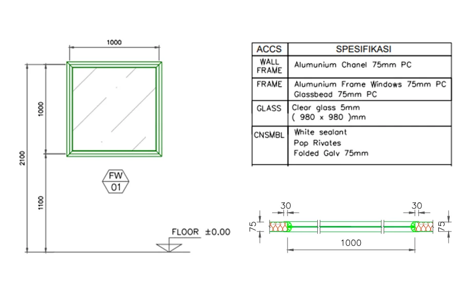 Jendela ini dirancang dengan standar higienitas tinggi, permukaan rata (flush), dan memiliki sealing yang baik agar tidak mengganggu tekanan ruang dan tidak menimbulkan kontaminasi